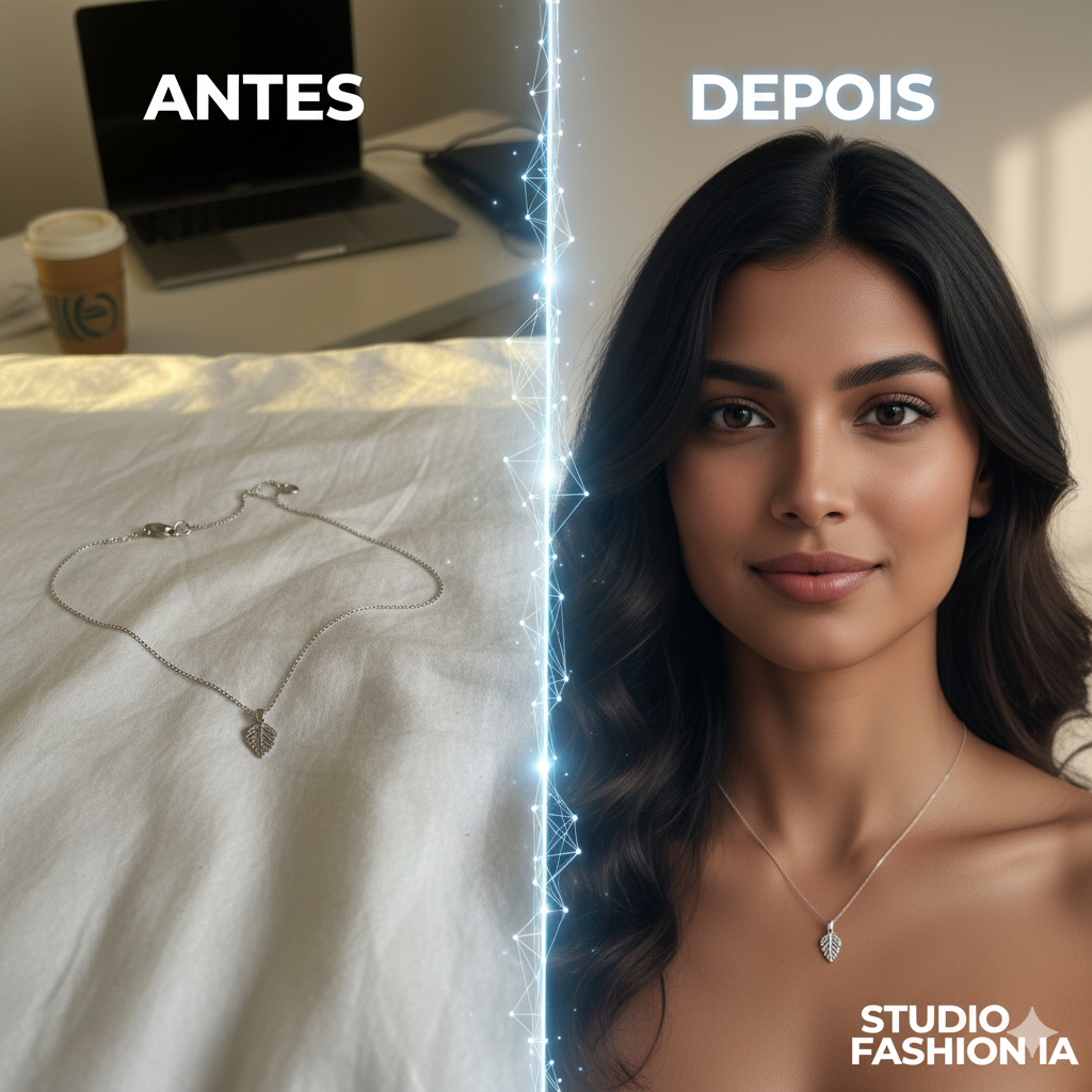 Domine as técnicas de IA para transformar fotos simples em imagens e videos de estúdio de alta qualidade que vendem.